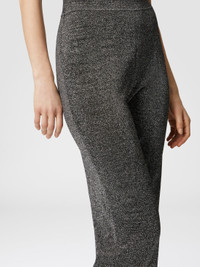 Glitter viscose for a multi-faceted effect: this is how flare trousers take on a "disco" character, perfect for embellishing any look. MORE DETAILS - Flare Pants - Elastic waistband - Lame viscose Composition: EXTERNAL:70%Rayon, 30%Metal Fiber Care instructions: Dry cleaning in tetrachloroethene - mild process ; Ironing maximum temperature 110°C - without steam ; Hand wash ; Wash inside out ; Wash in net bag ; Dry flat ; Do not tumble dry ; Do not bleach Made in: Romania Product ID DS24WI1KBK042TS91LV