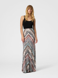 Made of viscose zigzag knit, this women’s long skirt features a flared cut enhanced by raschel workmanship. The design includes an elastic waistband. MORE DETAILS - Long flared skirt - Zigzag viscose knit - Elasticated waistband Composition: EXTERNAL:100%Rayon; LINING : 82%Polyester, 18%Elastane Care instructions: Dry cleaning in tetrachloroethene - mild process ; Ironing maximum temperature 110°C - without steam ; Do not tumble dry ; Dry flat ; Do not wash ; Do not bleach Made in: Italy Product ID DS25WH0VBR012GSM9QW
