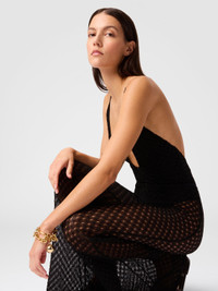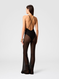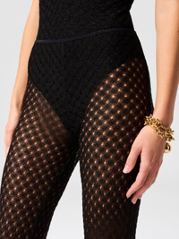 MORE DETAILS - Women's flare beach cover-up pants - Raschel lace knit - Spiderweb pattern - Viscose lame Composition: EXTERNAL:83%Rayon, 17%Metal Fiber; LINING : 80%Polyamide, 20%Elastane Care instructions: Ironing maximum temperature 110°C - without steam ; Dry cleaning in tetrachloroethene ; Do not tumble dry ; Do not wash ; Do not bleach Made in: Italy Product ID MC25SI00BR014RS91RE
