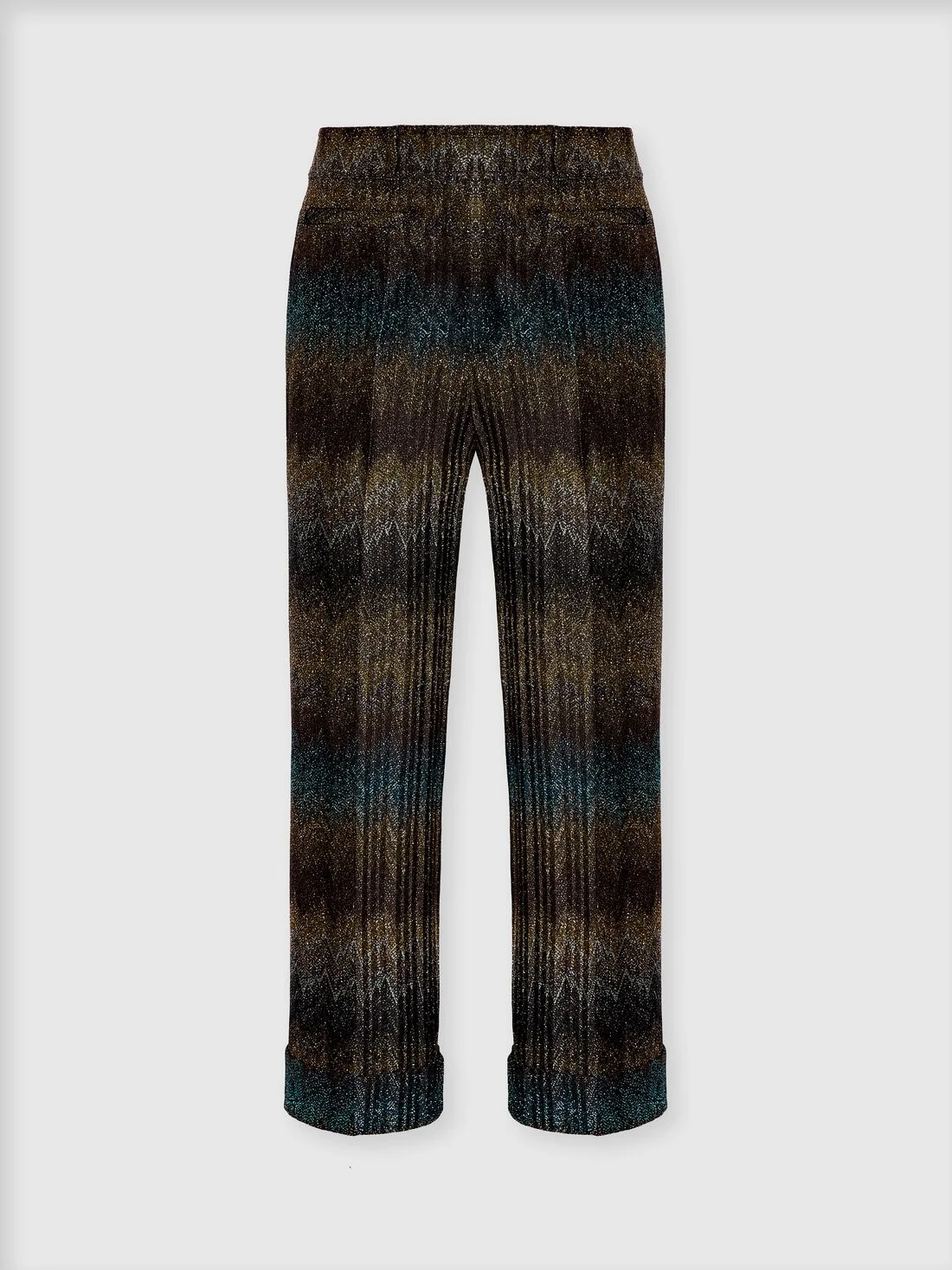 These women’s flare trousers in lame viscose combine a fluid flared silhouette with a luminous, shaded texture. The irregular degrade snake motif and raschel workmanship create a refined graphic effect with a bold, confident character. MORE DETAILS - Women’s flare trousers - Raschel workmanship - Irregular degrade snake motif - Lame viscose Composition: EXTERNAL:83%Rayon, 17%Metal Fiber; INTERNAL REINFORCEMENT:100%Polyester; LINING : 100%Polyester Care instructions: Ironing maximum temperature 110°C - without steam ; Hand wash ; Do not tumble dry ; Dry flat ; do not soak ; Do not dry clean ; Cool Hand Wash ; Do not bleach Made in: Italy Product ID DS26SI05BR014SS91RN