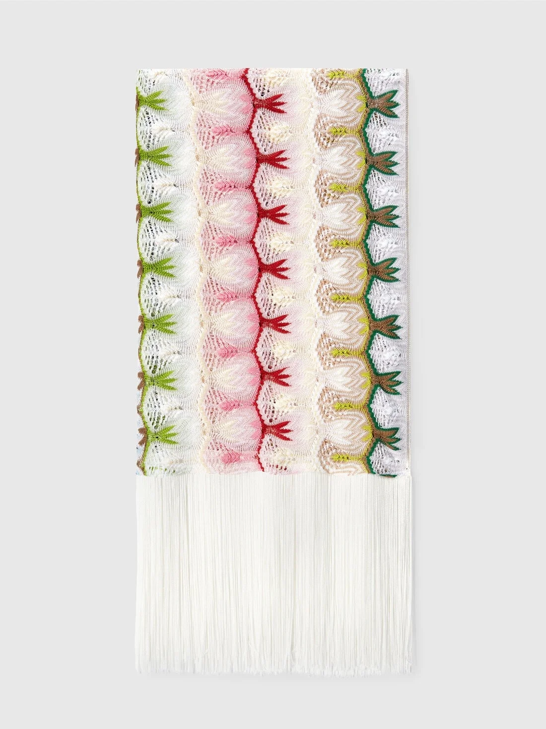 Light and enveloping, the women's stole made of a cotton and viscose blend stands out for its abstract floral lacework, adding a touch of femininity and refinement. The fringes along the edges complete the design with a delicate movement, making it ideal for enhancing any style with elegance. MORE DETAILS - Women's stole with fringes - Fringed edge - Lace workmanship - Viscose and cotton blend Composition: EXTERNAL:76%Rayon, 24%Cotton Care instructions: Dry cleaning in tetrachloroethene - mild process ; Do not tumble dry ; Dry flat ; Steam iron only ; Do not wash ; Do not iron ; Do not bleach Made in: Italy Product ID AS25SS00BR0132SM9QS