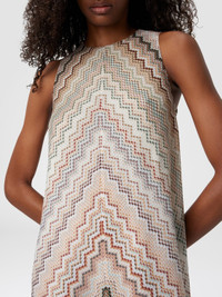 Lightweight and feminine: This sleeveless viscose mini-dress plays with a degrade zigzag pattern, enriched with the serrated rashel pattern, creating a fluid effect that enhances every step. The flared silhouette gives effortless appeal, perfect for those who like to express themselves through refined details. MORE DETAILS - Flared Mini Dress - Sleeveless Model - Viscose processing - Iconic degrade pattern Composition: EXTERNAL:96%Rayon, 2%Metal Fiber, 2%Polyamide; LINING : 100%Polyester Care instructions: Dry cleaning in tetrachloroethene - mild process ; Dry flat ; Steam iron only ; Do not tumble dry ; Do not iron ; Do not wash ; Do not bleach Made in: Italy Product ID DS25SG1LBR010SS01FD