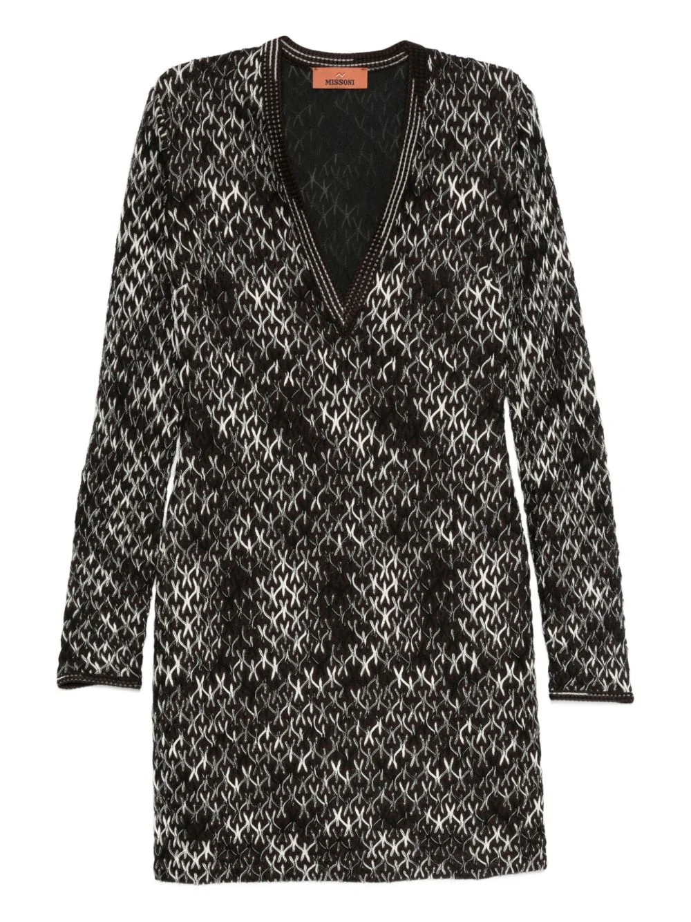 geometric-pattern V-neck dress Highlights - Brown - Geometric pattern - V-neck - Long sleeves - Knitted fabric - The item you receive may differ slightly from the item photographed. this is due to the artisanal nature with which all missoni products are constructed. Imported Composition Fabric 100% SIZE & FIT Model measurements Height 5 ft 9 in(1.75 m) Bust/Chest 34.64 in(88 cm) Hips 36.61 in(93 cm) Waist 26.37 in(67 cm) Washing instructions Read Manufacturer Guidelines