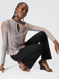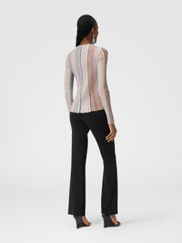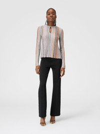 The knitted straight trousers, a timeless model at the base of the most disparate outfits, acquire, thanks to the Missoni touch, a precious cote: thanks to the viscose yarn lit up by the lame. MORE DETAILS - Straight Pants - Lame viscose sweater - Elastic waistband Composition: EXTERNAL:70%Rayon, 30%Metal Fiber Care instructions: Hand wash ; Ironing maximum temperature 110°C - without steam ; Dry cleaning in tetrachloroethene - mild process ; Dry flat ; Do not tumble dry ; Iron with a cloth between ; Do not bleach Made in: Romania Product ID DS24WI0TBK039JS91KC