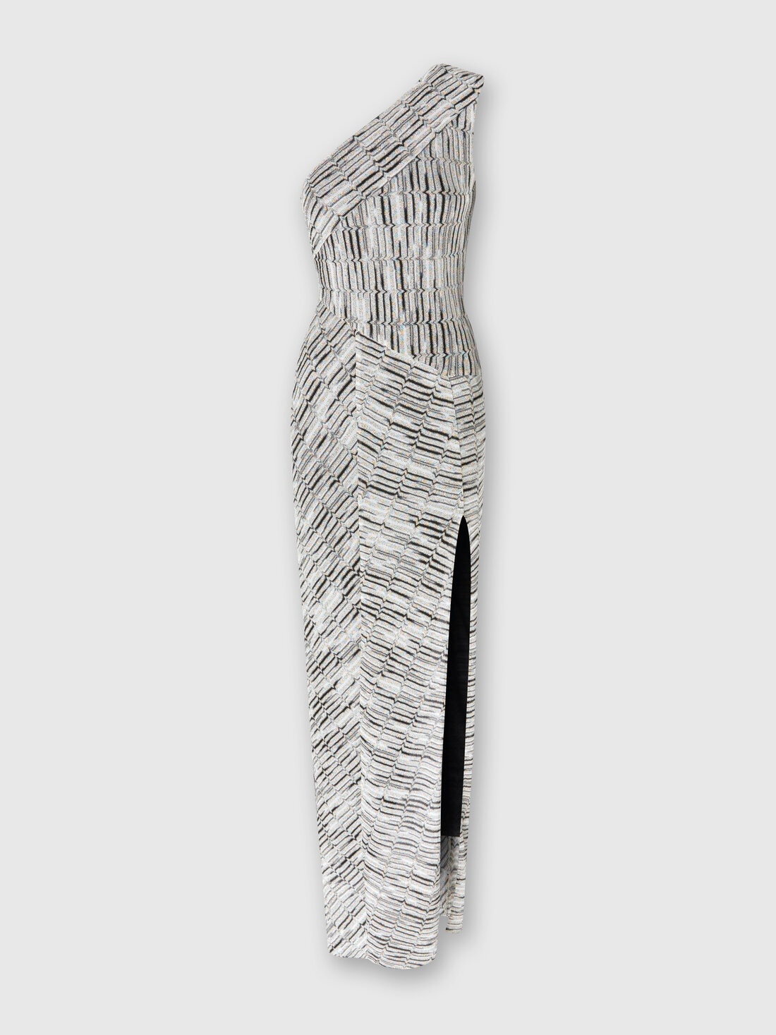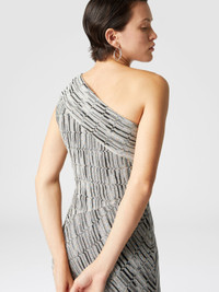 A dress that knows how to tell a story of style and boldness, with its one-shoulder cut and the Greek lame motif that flows like an ancient decoration on a contemporary fabric. The deep slit gracefully breaks up the length, adding a sense of sophisticated lightness. MORE DETAILS - Tank top with an essential cut - Iconic serrated zig zag pattern - Lame filaments Composition: EXTERNAL:82%Rayon, 18%Metal Fiber; LINING : 77%Polyamide, 23%Elastane Care instructions: Dry cleaning in tetrachloroethene - mild process ; Dry flat ; Steam iron only ; Do not tumble dry ; Do not wash ; Do not iron ; Do not bleach Made in: Italy Product ID DS25SG1UBR00ZWS6142