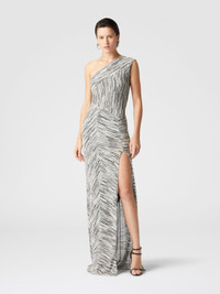 Long one-shoulder dress with Greek lamé motif and slit