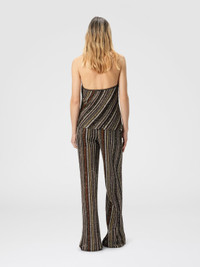This women’s top represents Missoni’s artisan mastery, with halter neckline and refined herringbone striped knit. Adorned with sequins that add light, the piece embodies elegance and dynamism, creating a shimmering effect that draws attention with discretion and class. MORE DETAILS - Halter neck top - Chevron stripe knit - Viscose blend - Lame threads and sequins Composition: EXTERNAL:60%Rayon, 35%Polyamide, 4%Metal Fiber, 1%Elastane Care instructions: Dry cleaning in tetrachloroethene - mild process ; Ironing maximum temperature 110°C - without steam ; Wash in net bag ; Dry flat ; Iron inside out ; Dry inside out ; Do not tumble dry ; Do not wash ; Do not bleach Made in: Italy Product ID DS25WK04BK01C3SM9T5