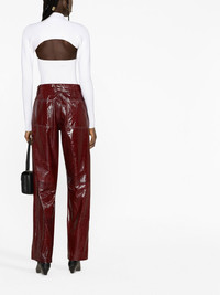 high-shine finish trousers