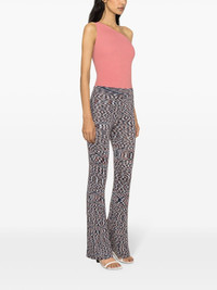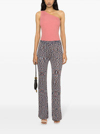 high-waist flared trousers Woven with patterned intarsia threads, these trousers capture Missoni's love for striking designs. They're made in Italy with a flared-cuff silhouette. Highlights - Midnight blue/multicolour - Fine ribbed - Space print - High waist - Elasticated waistband - Slim cut - Flared hem - Unlined - The item you receive may differ slightly from the item photographed. this is due to the artisanal nature with which all missoni products are constructed. Made in Italy Composition Viscose 65%, Polyamide 35% SIZE & FIT Model measurements Height 5 ft 10 in(1.78 m) Bust/Chest 31.49 in(80 cm) Hips 35.03 in(89 cm) Waist 23.62 in(60 cm) FittingInformation Designed with a flared hem, these trousers allow for a close fit at the waist with a slim fit over the leg and widening towards the hem The elasticated waist allows for a comfortable fit Made with a midweight knit, this piece offers some stretch This piece fits true to size – take your usual size