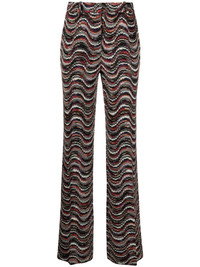 jacquard straight-leg trousers These Missoni trousers are textured with wavy patterned jacquard that pays homage to the label's signature aesthetic. Boasting a standard straight-leg silhouette, the kaleidoscope of colours elevates the design. Highlights - Black/multicolour - Patterned jacquard - Mid-rise - Belt loops - Concealed front fastening - Two side slit pockets - Two rear welt pockets - Straight leg - The item you receive may differ slightly from the item photographed. this is due to the artisanal nature with which all missoni products are constructed. Made in Italy Composition Outer: Viscose 70%, Cupro 30% Lining: Polyester 100% SIZE & FIT Model measurements Height 5 ft 10 in(1.79 m) Bust/Chest 31.1 in(79 cm) Hips 35.03 in(89 cm) Waist 24.01 in(61 cm) FittingInformation Designed for a straight-leg fit, these trousers allow for a close fit at the waist and an unrestricted, comfortable fit over the leg Made from a midweight non-stretch fabric, this piece offers minimal elasticity when worn This piece fits true to size – take your usual size Washing instructions Dry Clean Only