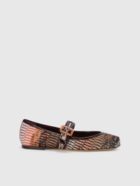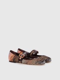 The patterned fabric lit by the flashes of lame adds a new and feminine touch to women's ballet flats with patent trim. The classic model, with a rounded toe and flat sole, acquires versatility thanks to the adjustable strap. MORE DETAILS - Lame fabric ballet flats - Adjustable strap - Paint profiles Composition: UPPER:72%Rayon, 18%Metal Fiber, 10%Domestic calf leather; LINING : 100%Pelle Capra; SOLE:100%Domestic calf leather Made in: Italy Product ID LS24WY0ZBV00GZS80DG