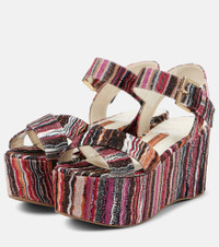 Product Details - Upper: fabric - Lining: leather - Sole: leather insole, rubber sole - Toe shape: almond open toe - Made in Italy - Includes: shoe box, dust bag - Designer color name: Orange Red - Closure: buckle-fastening ankle strap - Hardware color: gold - Item number: P01016690 Size & Fit - True to size - Best fit for narrow feet - European sizes - 6cm-2.5" platform (size EU 38) - 8cm-3" wedge heel (size EU 38)