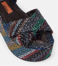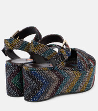 These platform sandals from Missoni boldly boast the brand's signature Chevron pattern. Fully lined with soft leather for optimal comfort, they fasten with a gold-toned buckle. Product Details - Upper: fabric - Lining: leather - Sole: leather insole, rubber sole - Toe shape: round open toe - Made in Italy - Includes: dust bag - Designer color name: Multicolor - Item color: multicolor - Hardware color: gold - Closure: buckle-fastening ankle strap - Contains non-textile parts of animal origin - Item number: P01063743 Size & Fit - True to size - Slightly wide at the toe - European sizes - 6,5cm-2.5" platform (size EU 38) - 9cm-3.5" wedge heel (size EU 38)