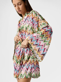 Kimono cover-up in stretch viscose with lace and zigzag motif