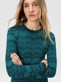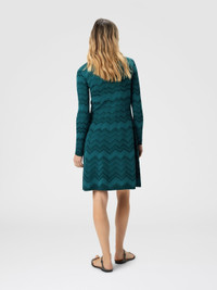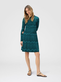 A modern interpretation of Missoni’s style, this long-sleeved women’s crewneck short dress expresses the brand’s iconic elegance through a refined chevron knit. Made from a soft wool and viscose blend, it wraps the figure with lightness and dynamism, thanks to the signature zigzag pattern that plays with textures and tonal shifts. MORE DETAILS - Short dress with long sleeves and crewneck - Chevron knit - Wool and viscose blend Composition: EXTERNAL:60%Rayon, 31%Wool, 9%Polyester Care instructions: Ironing maximum temperature 110°C - without steam ; Dry cleaning in tetrachloroethene - mild process ; Dry flat ; Iron inside out ; Do not tumble dry ; Do not wash ; Do not bleach Made in: Italy Product ID DS25WG29BK01CPS615L