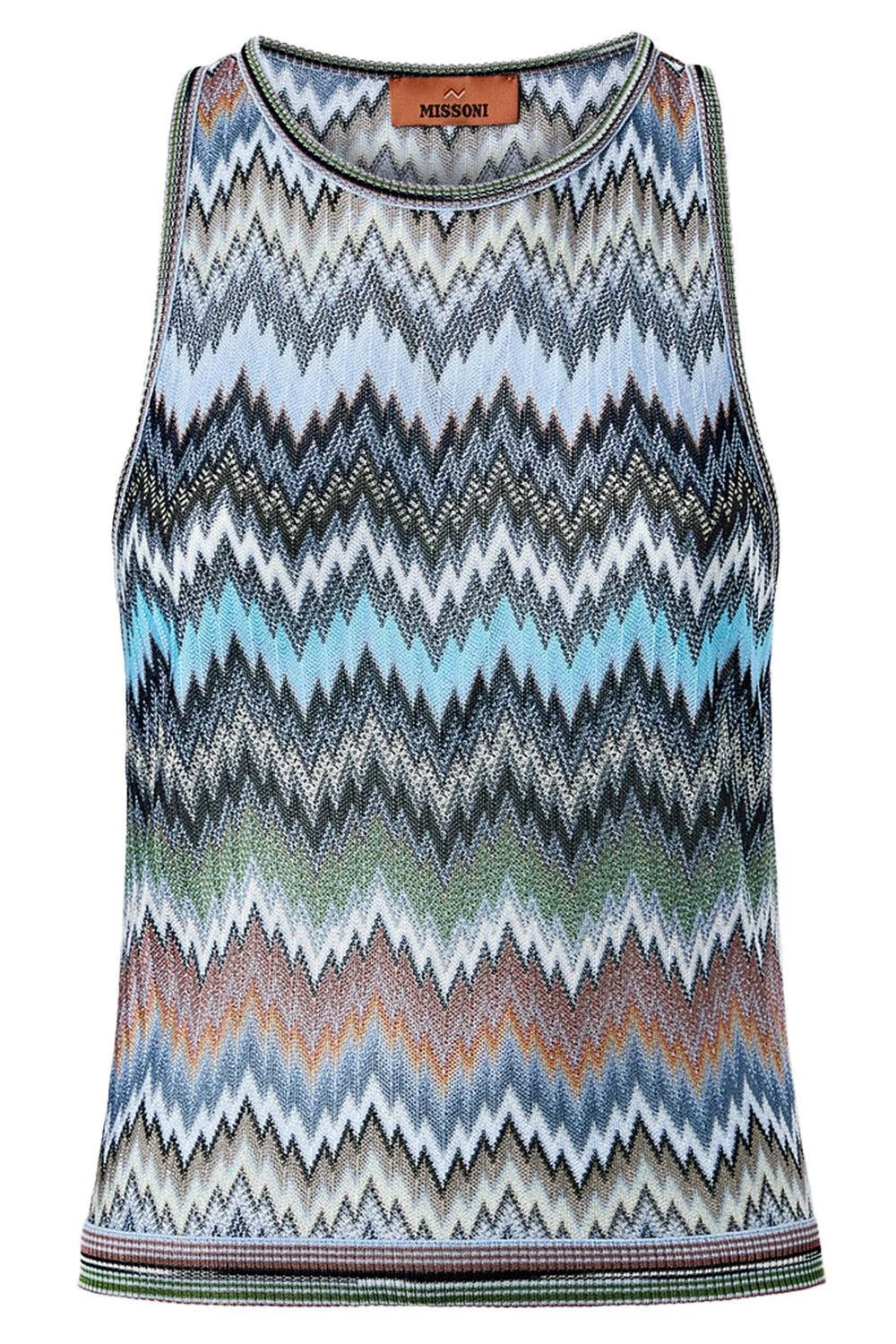 DETAILS AND INSIGHT Missoni knit tank top in multicolor blue tones. 100% Vi Hand Wash Made In Italy Style DS26SK0J-S91RM