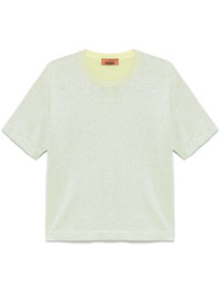 knitted T-shirt Highlights - Light green - Lurex detailing - Crew neck - Short sleeves - The item you receive may differ slightly from the item photographed. this is due to the artisanal nature with which all missoni products are constructed. Imported Composition Viscose 88%, Metallic Fibre 12% SIZE & FIT Model measurements Height 5 ft 10 in(1.77 m) Bust/Chest 29.92 in(76 cm) Hips 34.25 in(87 cm) Waist 23.62 in(60 cm) FittingInformation Designed to be unstructured, offering a loose fit throughout Made with a fine knit, this piece offers some stretch