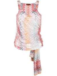 knot-detail knitted top Introduced in Missoni's 1967 collection, the signature zigzag weave was born from experimentation with the raschel sewing machine. The iconic motif defines this knitted top, complete with a statement knot fastening at the front. Highlights - Multicolour - Knitted construction - Signature zigzag woven design - Sleeveless - Front tie fastening - Asymmetric hem - The item you receive may differ slightly from the item photographed. this is due to the artisanal nature with which all missoni products are constructed. Made in Italy Composition Viscose 100% SIZE & FIT Model measurements Height 5 ft 9 in(1.75 m) Bust/Chest 31.49 in(80 cm) Hips 34.05 in(86.5 cm) Waist 24.21 in(61.5 cm) FittingInformation Designed to be unstructured, offering a loose fit throughout Made with a fine knit, this piece offers some stretch This piece fits true to size – take your usual size