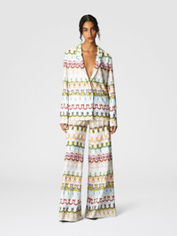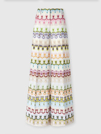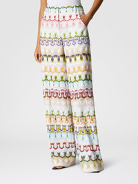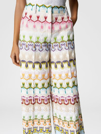 These women's long pants reinterpret lace in a contemporary way with an abstract floral pattern. The wide leg and high waist offer an elegant and comfortable fit, perfect for a sophisticated look. MORE DETAILS - Women's long pants - High waist - Lace workmanship - Abstract floral pattern Composition: EXTERNAL:76%Rayon, 24%Cotton; INTERNAL REINFORCEMENT:100%Polyester; LINING : 100%Polyester Care instructions: Dry cleaning in tetrachloroethene - mild process ; Steam iron only ; Do not tumble dry ; Dry flat ; Do not iron ; Do not wash ; Do not bleach Made in: Italy Product ID DS25SI1BBR0132SM9QS