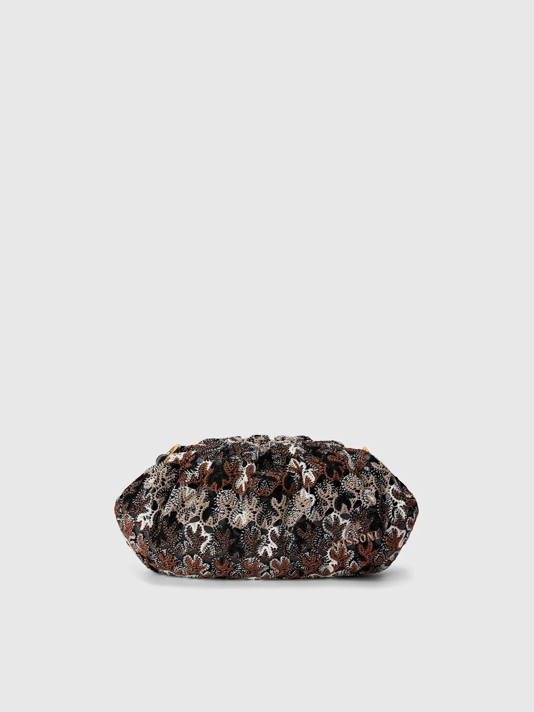 To complete your outfit with a touch of elegance, this women's clutch bag in lace-patterned fabric is made from a viscose and lame blend and features a removable shoulder strap. A refined accessory that brightens up your look with Missoni's unmistakable sophistication. MORE DETAILS - Women's fabric clutch bag - Lace pattern - Viscose and lame blend - Removable shoulder strap Composition: EXTERNAL:91%Rayon, 9%Metal Fiber; LINING : 100%Cotton Care instructions: Do not tumble dry ; Do not dry clean ; Do not iron ; Do not wash ; Do not bleach Made in: Italy Product ID LS25WX07BV00ILS80EH