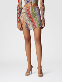 This short skirt blends elegance and versatility with Raschel lace combined with mesh and lurex, creating a sparkling effect. The adjustable slit, enhanced by a tie that runs the full length, adds a touch of customization and movement. MORE DETAILS - Women's short skirt - Lurex workmanship - Adjustable slit Composition: EXTERNAL:73%Rayon, 14%Metal Fiber, 13%Polyamide Care instructions: Ironing maximum temperature 110°C - without steam ; Dry cleaning in tetrachloroethene ; Do not tumble dry ; Do not wash ; Do not bleach Made in: Italy Product ID MS25SH0EBR012SSM9QN