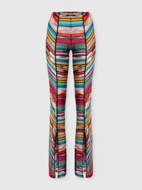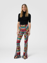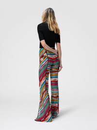 Opened by elegant slits at the bottom, these women's slub viscose trousers are presented in a fluid silhouette. Made with raschel processing, they are enriched with metallic reflections of the lame that enhance the texture of the fabric, making the garment a refined expression of Missoni style. MORE DETAILS - Trousers with slits at the bottom - Flamed viscose and lame - Raschel processing Composition: EXTERNAL:88%Rayon, 12%Metal Fiber Care instructions: Ironing maximum temperature 110°C - without steam ; Dry cleaning in tetrachloroethene ; Do not tumble dry ; Do not wash ; Do not bleach Made in: Italy Product ID MS25SI00BR00ZZS208H