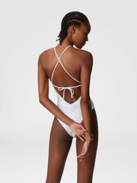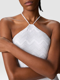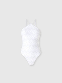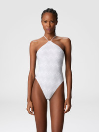 Zig zag lamé viscose one-piece swimsuit with halter neck