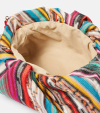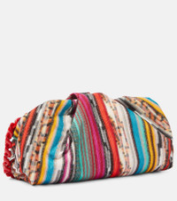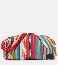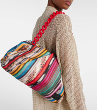 Product Details - Material: fabric - Lining: fabric - Made in Italy - Designer color name: Stripes Mare - Trim: leather - Internal details: internal slot pocket - Closure: magnetic fastening - Hardware color: rose gold - Top handle - Includes: dust bag - Item number: P00992705 Size & Fit - Height 22cm-8.5" - Width 37,5cm-15" - Depth 11cm-4.5" - Chain length 67cm-26.5"