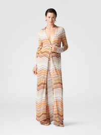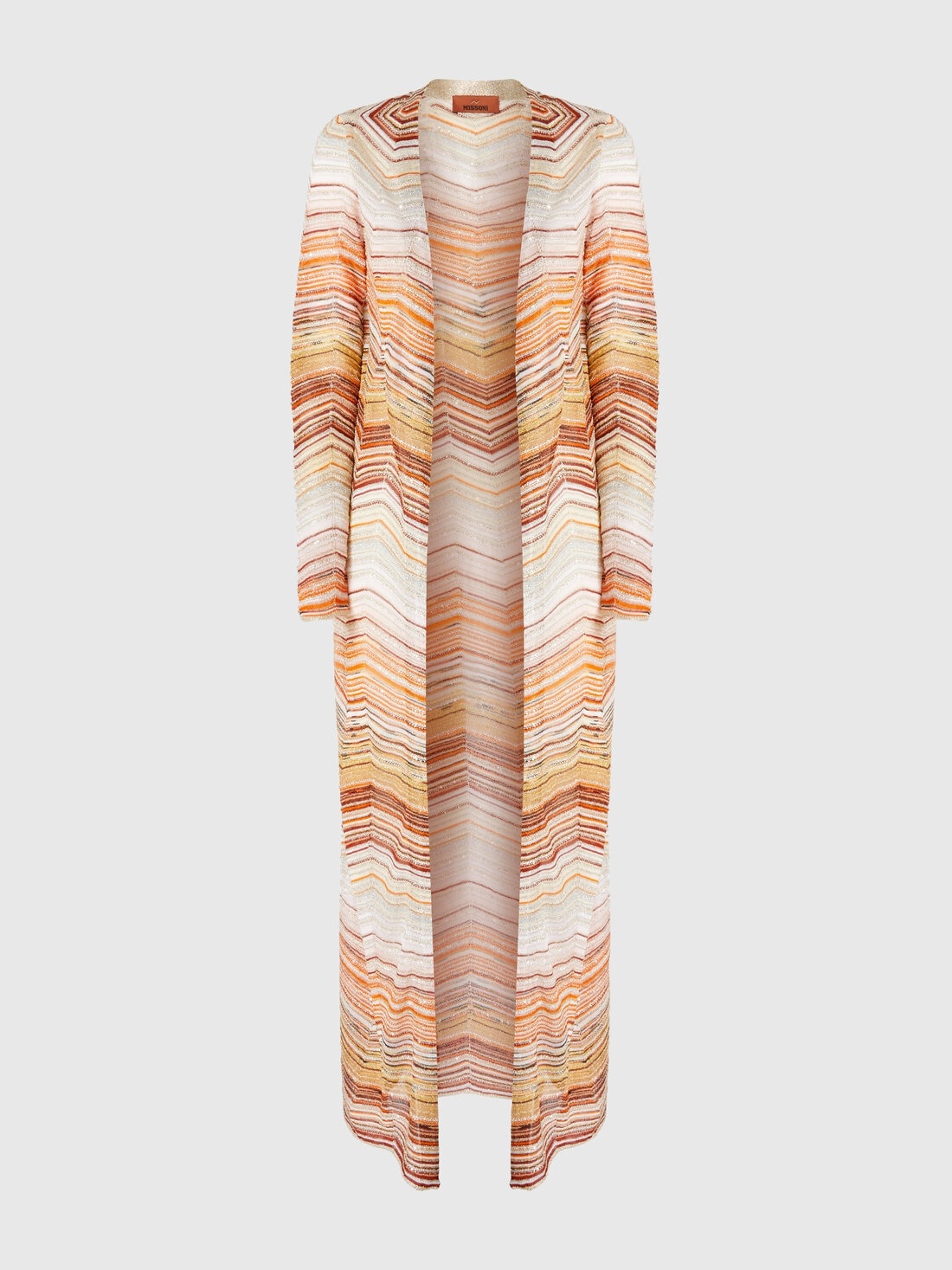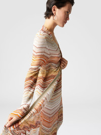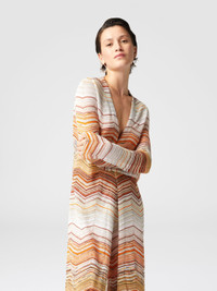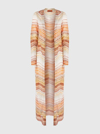 This long lame chevron cardigan is the perfect fusion of luxury and comfort, with a shimmering effect created by the sequins that run through it. The decorative lace adds a refined touch, while the enveloping and fluid silhouette reflects the savoir-faire of the Missoni maison. A versatile and unique garment, capable of enhancing any look with luminous elegance. MORE DETAILS - Short model dress - Chevron Processing - Lame filaments - Decorative Sequins - Halter neckline - Sleeveless Composition: EXTERNAL:80%Rayon, 11%Metal Fiber, 5%Polyamide, 4%Polyester Care instructions: Dry cleaning in tetrachloroethene - mild process ; Ironing maximum temperature 110°C - without steam ; Wash inside out ; Wash in net bag ; Iron inside out ; Dry flat ; Do not tumble dry ; Do not wash ; Do not bleach Made in: Italy Product ID DS25SM0OBK045DSM9MH
