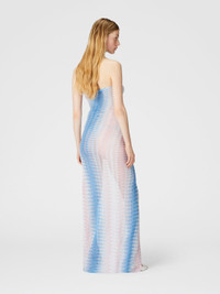 Elegance and seduction merge in this strapless cover-up, made from degrade lace with a sensual play of transparencies. The side gathering and skirt slit add movement and refinement, while the viscose and lame enhance the fabric's luminosity. MORE DETAILS - Women's long cover-up - Degrade lace workmanship - Lame and viscose fabric - Straight neckline without straps - Sensual transparency - Side detail with ties Composition: EXTERNAL:93%Rayon, 7%Metal Fiber Care instructions: Ironing maximum temperature 110°C - without steam ; Dry cleaning in tetrachloroethene ; Do not tumble dry ; Do not wash ; Do not bleach Made in: Italy Product ID MC25SQ07BR0131S72L3