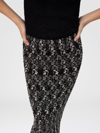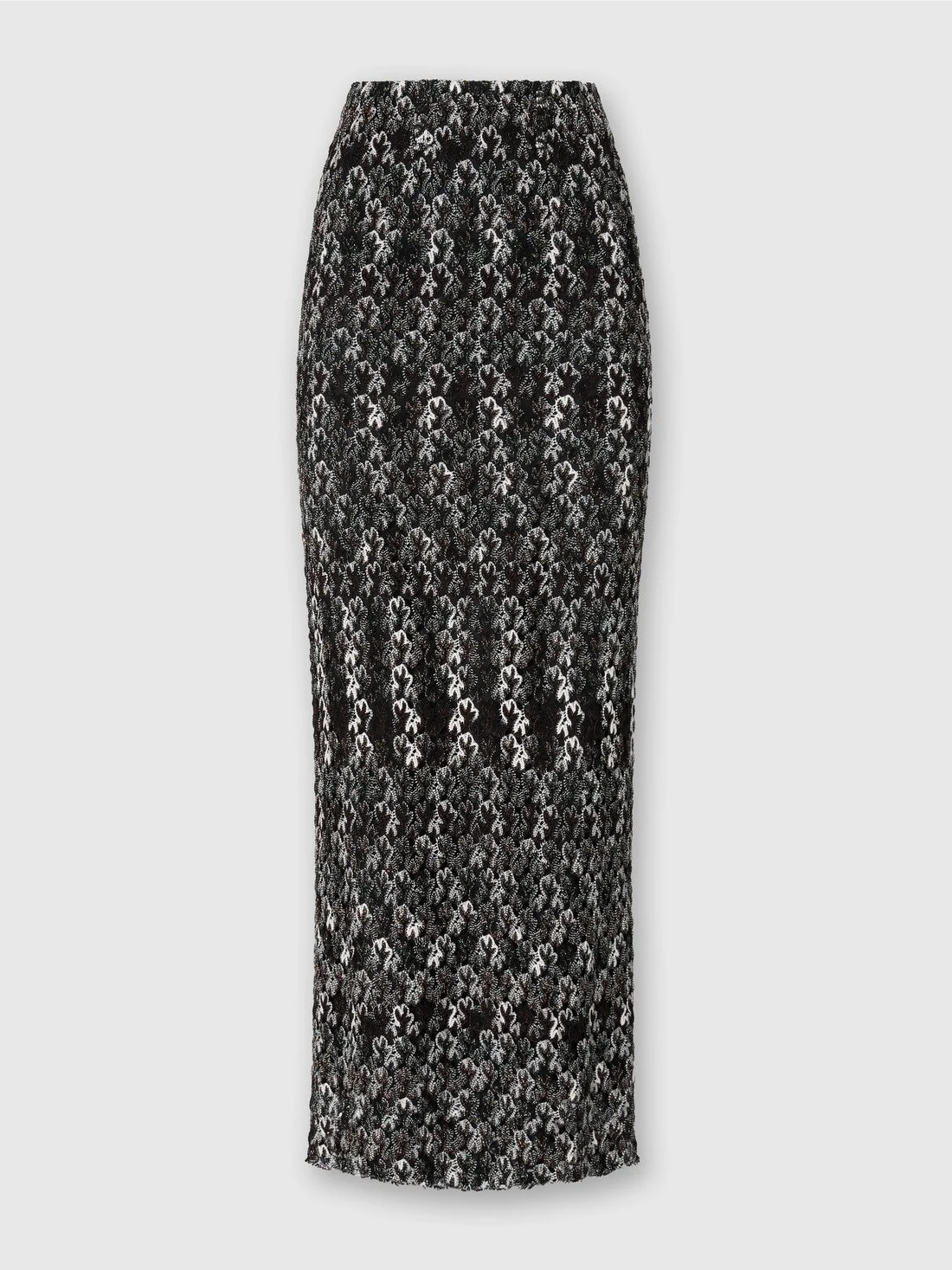 A piece that defines a sophisticated and refined look: this long women’s pencil skirt is made of lace with refined raschel workmanship. The viscose blend yarn is enriched with lame threads that give discreet and refined luminosity. A perfect balance between classical elegance and contemporary touches. MORE DETAILS - Long pencil skirt - Raschel lace-effect knit - Viscose blend with lame threads Composition: EXTERNAL:91%Rayon, 9%Metal Fiber; LINING : 82%Polyester, 18%Elastane Care instructions: Dry cleaning in tetrachloroethene - mild process ; Ironing maximum temperature 110°C - without steam ; Do not tumble dry ; Dry flat ; Do not wash ; Do not bleach Made in: Italy Product ID DS25WH05BR012HS80DP