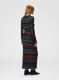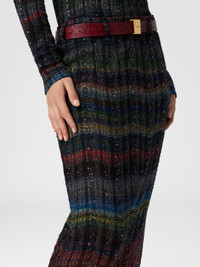 Women’s pleated tube skirt, crafted on a Caperdoni loom from a refined viscose blend with lame threads. The fabric features a sophisticated check wave pattern that adds visual depth and dynamic texture. Lame threads run subtly through the surface, enhancing the pleats’ movement and the clean tubular line. MORE DETAILS - Women's long tube skirt - Pleats - Woven Caperdoni framework with wave check pattern - Viscose and lame filament blend Composition: EXTERNAL:52%Rayon, 24%Cotton, 14%Polyamide, 7%Metal Fiber, 3%Polyester; LINING : 82%Polyester, 18%Elastane Care instructions: Hand wash ; Steam iron only ; Do not tumble dry ; Dry flat ; Do not dry clean ; Do not iron ; Do not bleach Made in: Italy Product ID DS25WH12BC005USM9U7