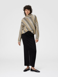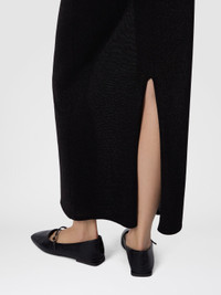 Women’s pencil skirt with essential and impeccable cut, enhanced by fine vanise workmanship in viscose blend with lame threads that give it an elegant glow. The back slit adds comfort and a touch of discreet femininity, making it ideal for sophisticated and refined outfits. MORE DETAILS - Long skirt with slit - Vanise knit - Viscose blend with lame threads Composition: EXTERNAL:85%Rayon, 12%Metal Fiber, 2%Polyamide, 1%Elastane Care instructions: Dry cleaning in tetrachloroethene - mild process ; Ironing maximum temperature 110°C - without steam ; Do not tumble dry ; Iron inside out ; Dry inside out ; Dry flat ; Iron with a cloth between ; Do not wash ; Do not bleach Made in: Romania Product ID DS25WH00BK01BYL905E