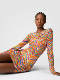 Long-sleeved cover-up dress in tulle printed with multicolor chevron that embodies the vibrant and sophisticated essence of Missoni's DNA. The long sleeves give the dress a sophisticated appeal, making it a versatile choice for the summer look. MORE DETAILS - Long Sleeve Dress - Tulle Printed - Zigzag pattern Composition: EXTERNAL:93%Polyamide, 7%Elastane Care instructions: Ironing maximum temperature 110°C - without steam ; Dry cleaning in tetrachloroethene ; Do not tumble dry ; Do not wash ; Do not bleach Made in: Italy Product ID MC22SL00BJ00NASM9N1