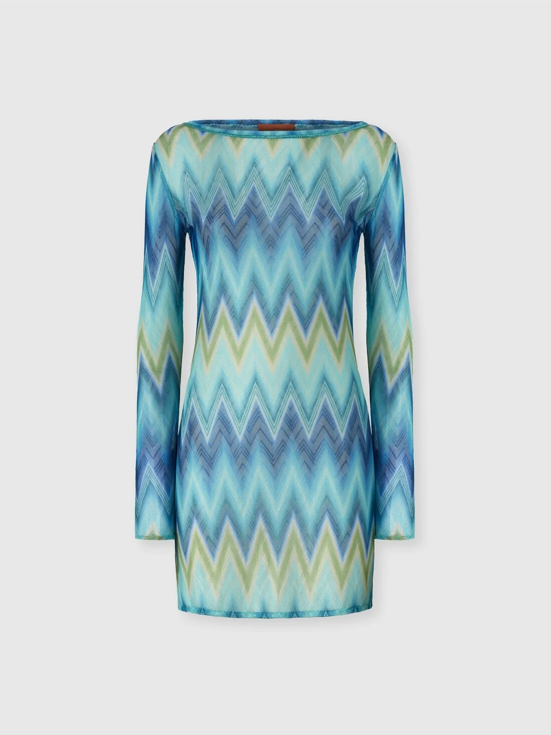 With a dynamic and sophisticated spirit, this women’s long-sleeve boat-neck T-shirt is enriched with a pattern of shaded micro and macro stripes that recall Missoni’s iconic zigzag. The refined design and moving texture make this garment a must-have for those seeking elegance and originality, adding a distinctive touch to their style. MORE DETAILS - Women's long-sleeve T-shirt - Boat neckline - Raschel knit with shaded micro/macro stripe pattern - Zigzag design Composition: EXTERNAL:100%Polyester; INSERTS:60%Rayon, 40%Metal; Sewing thread:100%Polyester Care instructions: Ironing maximum temperature 110°C - without steam ; Dry cleaning in tetrachloroethene - mild process ; Do not tumble dry ; Iron with a cloth between ; Do not wash ; Do not bleach Made in: Italy Product ID MC22SL00BR013XS72NO