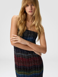 This strapless long dress for women, woven on a Caperdoni loom, exudes sophisticated elegance through its intricate textile weave. The check wave pattern, defined by a raised graphic play, adds movement and depth to the fluid silhouette. The viscose blend offers softness and a subtle sheen, while the artisanal construction underscores attention to detail. MORE DETAILS - Strapless long dress for women - Caperdoni framework weaving - Woven texture with wave pattern - Viscose and cotton blend Composition: EXTERNAL:52%Rayon, 24%Cotton, 14%Polyamide, 7%Metal Fiber, 3%Polyester; LINING : 82%Polyester, 18%Elastane Care instructions: Hand wash ; Steam iron only ; Do not tumble dry ; Dry flat ; do not soak ; Do not dry clean ; Do not iron ; Do not bleach Made in: Italy Product ID DS25WG34BC005USM9U7