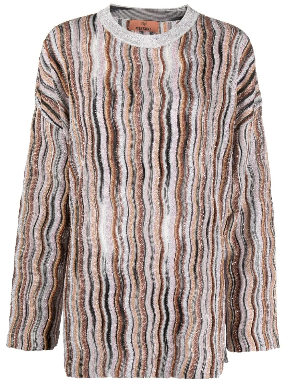 lurex-detail drop-shoulder jumper Highlights - Multicolour - Wave pattern - Lurex detailing - Crew neck - Drop shoulder - Long sleeves - Straight hem - The item you receive may differ slightly from the item photographed. this is due to the artisanal nature with which all missoni products are constructed. Made in Italy Composition Viscose 85%, Polyamide 5%, Polyester 5%, Metal 5% SIZE & FIT Model measurements Height 5 ft 9 in(1.76 m) Bust/Chest 31.88 in(81 cm) Hips 35.43 in(90 cm) Waist 24.8 in(63 cm) FittingInformation Designed for a relaxed fit, this piece allows for comfort and movement when worn Made with a midweight knit, this piece offers some stretch This piece fits true to size – take your usual size Washing instructions Dry Clean Only