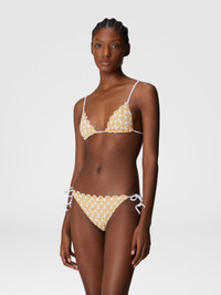 A lace bikini by Missoni, embellished with lame inserts that enhance its luminosity and elegance. The bottom, with adjustable ties, offers a customizable fit, while the triangle top with adjustable neck ties ensures comfort and support. A perfect model for those looking for a mix of refinement and style, ideal for a distinctive and sophisticated beach look. MORE DETAILS - Bikini - Adjustable triangle - Adjustable briefs - Lace - Lame inserts Composition: EXTERNAL:90%Rayon, 10%Metal Fiber; LINING : 80%Polyamide, 20%Elastane Care instructions: Hand wash ; Do not tumble dry ; Do not dry clean ; Do not iron ; Do not bleach Made in: Italy Product ID MS25SP0XBR012TS10BH