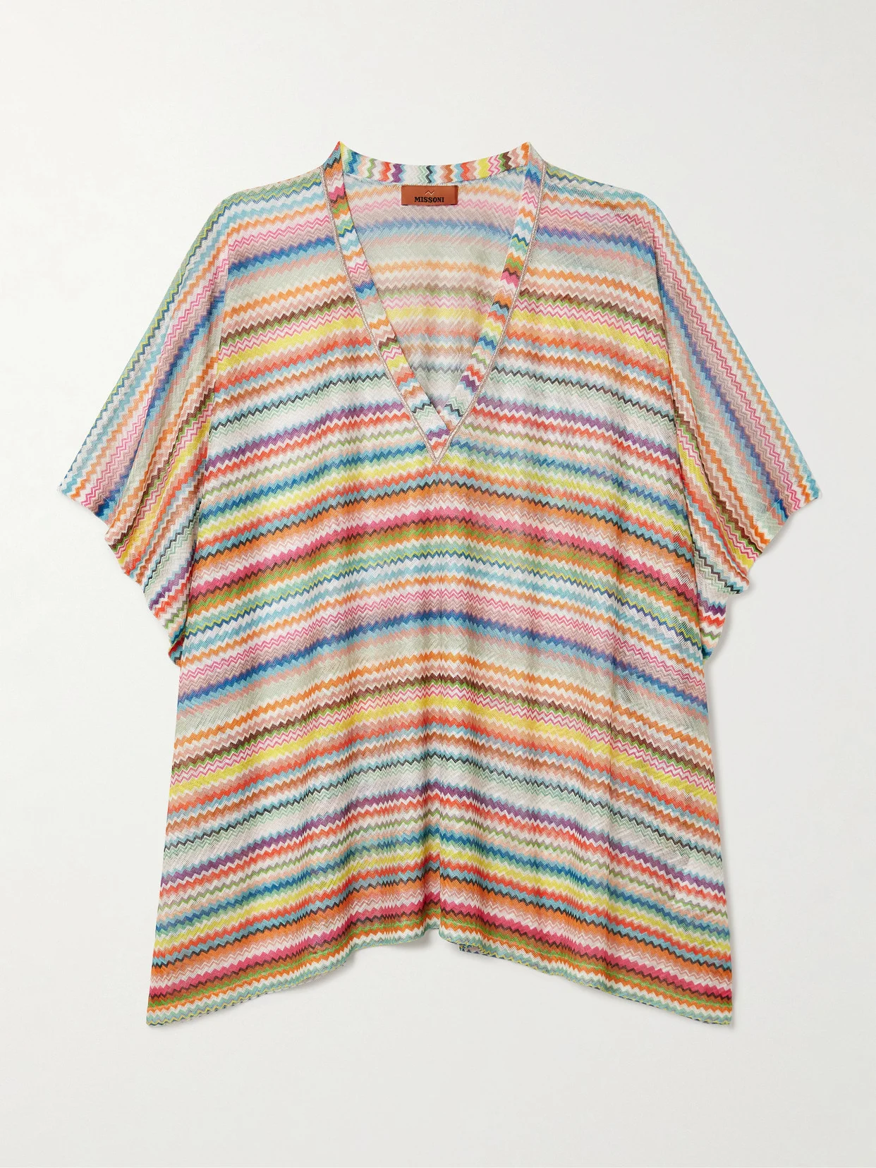 The vibrant spirit of Missoni Mare's designs makes them such a joy to wear. Trimmed with metallic threads, this coverup is patterned with colorful stripes and has a loose shape with a V-neckline. Slip yours on over one of the label's bikinis.