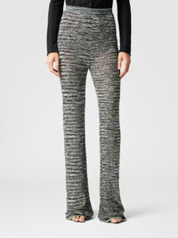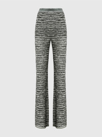 These flared slub knit trousers embody the distinctive character of Missoni. The straight and reverse chevron pattern creates a sophisticated pattern, while the sequins give a light that dances with the movement of the garment. The design, combined with the quality of the fabric, represents the perfect fusion of style and comfort. MORE DETAILS - Long one-shoulder dress - Neck Tie - Chevron Processing - Decorative sequins Composition: EXTERNAL:40%Rayon, 32%Polyamide, 26%Polyester, 2%Metal Fiber; LINING : 82%Polyester, 18%Elastane Care instructions: Dry cleaning in tetrachloroethene - mild process ; Hand wash ; Ironing maximum temperature 110°C - without steam ; Dry flat ; Do not tumble dry ; Do not bleach Made in: Italy Product ID DS25SI0GBK045BS614L
