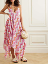 EDITORS'NOTES Missoni Mare's coverups are just as stylish as the label's statement swimwear. This maxi dress is colorfully crochet-knitted with rows of shimmering chevron stripes and has a breezy, asymmetric handkerchief hem. SIZE & FIT - Fits true to size, take your normal size - Designed for a loose fit - Lightweight, open knit - Model is 175cm/ 5'9", bra size 32D and is wearing an IT 40 DETAILS & CARE - Multicolored metallic crochet-knit - Slips on - 88% viscose, 7% metallic fiber, 5% polyamide - Dry clean