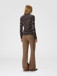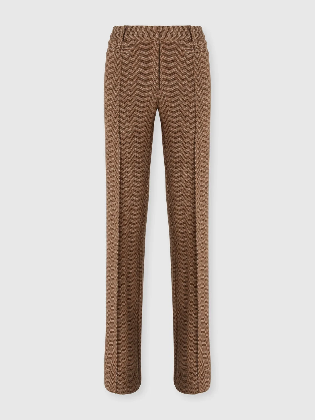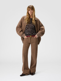Tailored trousers with a masculine edge for women, made on a Caperdoni loom featuring a bold, irregular chevron with strong graphic personality. The cotton-wool blend fabric adds structure and comfort, highlighting the precision of the lines and construction quality. A piece that reinterprets classic tailoring with a distinctive and modern touch. MORE DETAILS - Tailored menswear trousers for women - Woven Caperdoni framework - Irregular chevron pattern - Cotton and wool blend Composition: EXTERNAL:77%Wool, 23%Cotton; INTERNAL REINFORCEMENT:100%Polyamide Care instructions: Hand wash ; Ironing maximum temperature 110°C - without steam ; Do not tumble dry ; Dry flat ; COOL HAND WASH ; do not soak ; Do not dry clean ; Do not bleach Made in: Italy Product ID DS25WI15BC005RS01J5