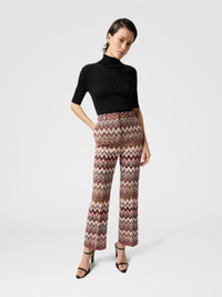 The sartorial perfection of these trousers is reflected in the zigzag texture that glides elegantly over the fabric. The cropped bottom gives a modern and contemporary cut, ideal for those looking for refined elegance, but with a touch of innovation. The signature of the Missoni maison is evident in the mastery of details and the choice of design. MORE DETAILS - Mini skirt with slit - Viscose and cotton processing - Zigzag pattern Composition: EXTERNAL:52%Cotton, 48%Rayon; INTERNAL REINFORCEMENT:100%Polyester Care instructions: Hand wash ; Dry cleaning in tetrachloroethene - mild process ; Do not tumble dry ; Dry flat ; Steam iron only ; Do not iron ; Do not bleach Made in: Italy Product ID DS25SI0OBR00ZUS91N6