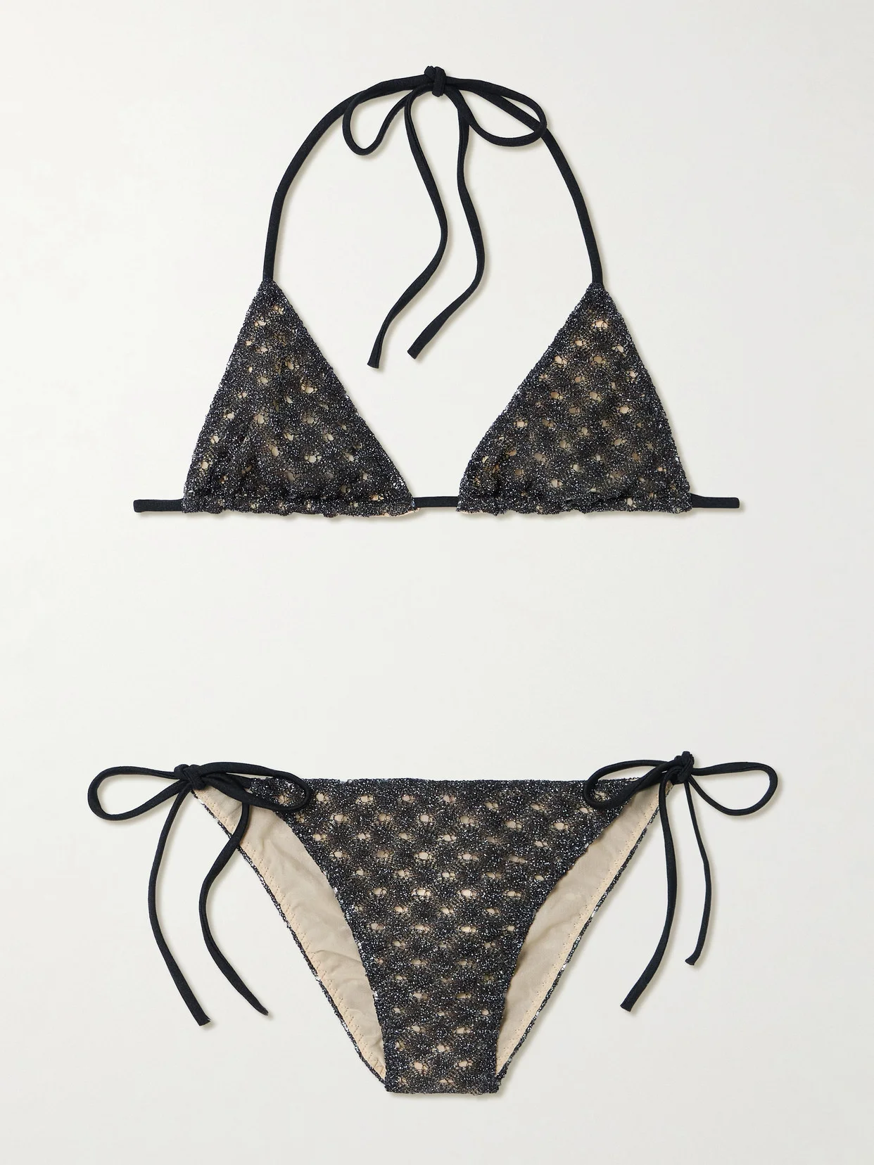 Metallic Crochet-knit Triangle Bikini