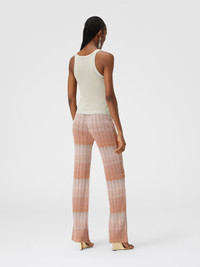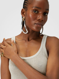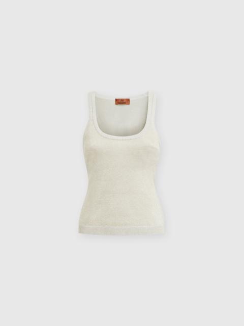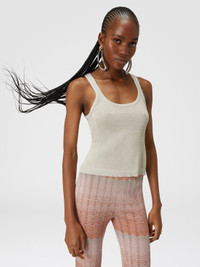The knitted tank top, a timeless model at the base of the most disparate outfits, acquires, thanks to the Missoni touch, a precious cote: thanks to the viscose yarn lit up by the lame. MORE DETAILS - Tank top with rounded neckline - Lame viscose sweater - Ribbed profiles Composition: EXTERNAL:70%Rayon, 30%Metal Fiber Care instructions: Dry cleaning in tetrachloroethene - mild process ; Ironing maximum temperature 110°C - without steam ; Hand wash ; Do not tumble dry ; Dry flat ; Iron with a cloth between ; Do not bleach Made in: Romania Product ID DS24WK0JBK039JS01CU