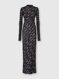 This long women’s dress with long sleeves and a high neck is a celebration of refinement. The raschel lace-effect knit creates a sophisticated look, while lame threads in viscose blend add a subtle glow. Every detail is crafted to enhance the figure gracefully—perfect for elegant occasions. MORE DETAILS - Long dress - Long sleeves - High neck - Raschel knit - Lace-effect motif - Lurex threads - Viscose blend Composition: EXTERNAL:89%Rayon, 11%Metal Fiber; INTERNAL REINFORCEMENT:100%Polyamide Care instructions: Dry cleaning in tetrachloroethene - mild process ; Wash max 30°C - Very mild process ; Dry flat ; Steam iron only ; Do not tumble dry ; Do not iron ; Do not bleach Made in: Italy Product ID DS25WG0TBR012PS91P5