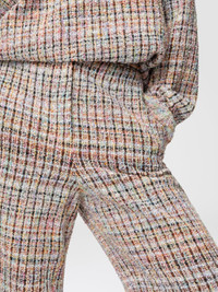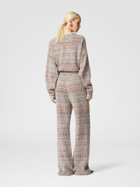 The palazzo trousers, made of a boucle wool and viscose blend with Caperdoni loom workmanship, are innervated by a cascade of sequins that light up the checkered motif. The result is a model with a flared bottom unlike any other. MORE DETAILS - Pantapalazzo - Boucle wool and viscose blend - Caperdoni Loom Processing - Sequined checkered pattern - Flared bottom Composition: EXTERNAL:46%Rayon, 26%Wool, 14%Polyamide, 8%Polyester, 6%Metal Fiber; INTERNAL:100%Polyamide Care instructions: Dry cleaning in tetrachloroethene - mild process ; Do not tumble dry ; Do not wash ; Do not iron ; Steam iron only ; Do not bleach Made in: Italy Product ID DS24WI19BC004RSM9IB