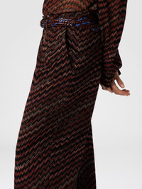 A synthesis of Missoni’s iconic tailoring, this mid-rise women’s trouser is made on a Caperdoni loom with the maison’s signature zigzag, reinterpreted in a dynamic wave version. The blend of viscose and cotton gives structure and softness, for a piece with graphic and unmistakable design. MORE DETAILS - Mid-rise tailored pants - Caperdoni loom knit - Wavy zig zag pattern Composition: EXTERNAL:92%Rayon, 8%Cotton; INTERNAL REINFORCEMENT:100%Polyester Care instructions: Dry cleaning in tetrachloroethene - mild process ; Wash max 30°C - Very mild process ; Steam iron only ; Dry flat ; Do not tumble dry ; Do not iron ; Do not bleach Made in: Italy Product ID DS25WI0OBC005DS4174