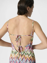 MORE DETAILS - Women's short beach cover-up mini dress - Open back - Zigzag lace pattern - Stretch viscose Composition: EXTERNAL:75%Rayon, 15%Polyamide, 10%Elastane Care instructions: Ironing maximum temperature 110°C - without steam ; Dry cleaning in tetrachloroethene ; Do not tumble dry ; Do not wash ; Do not bleach Made in: Italy Product ID MS26SQ1NBJ00QLSM9Z9