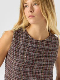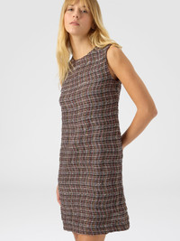 Bold and contemporary, this sleeveless women’s crewneck mini dress captivates through its refined textile detail. Made on a Caperdoni loom, it features a sophisticated check wave pattern woven into the fabric, enriched with lame threads for a subtle touch of light. MORE DETAILS - Sleeveless crewneck mini dress for women - Woven Caperdoni framework - Wave check pattern - Viscose blend with lame filaments Composition: EXTERNAL:63%Rayon, 16%Polyamide, 8%Metal Fiber, 7%Wool, 3%Cotton, 3%Polyester; LINING : 77%Polyamide, 23%Elastane Care instructions: Hand wash ; Steam iron only ; Do not tumble dry ; Dry flat ; Do not dry clean ; Do not iron ; Do not bleach Made in: Italy Product ID DS25WG41BC005WSM9US